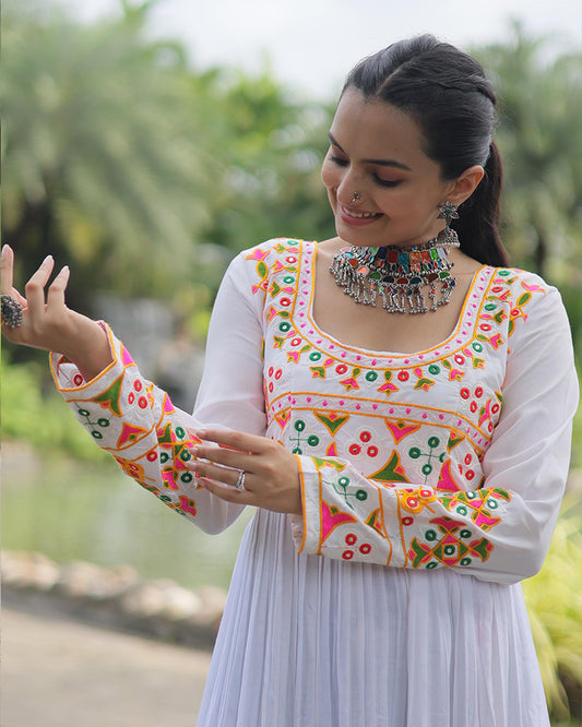 White Color Georgette Schiffli Work Navratri Kediya