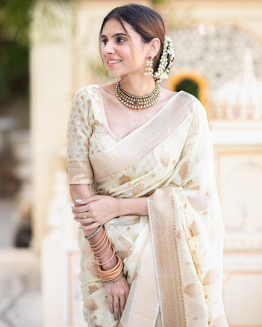 White Color Banarasi Jacquard Zari Weaving Saree