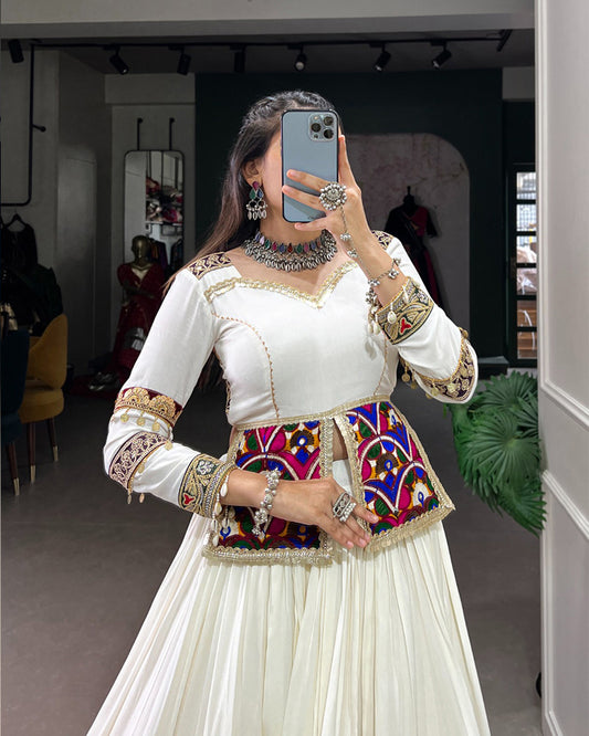 White Color Rayon Full Flair Navratri Lehenga Choli