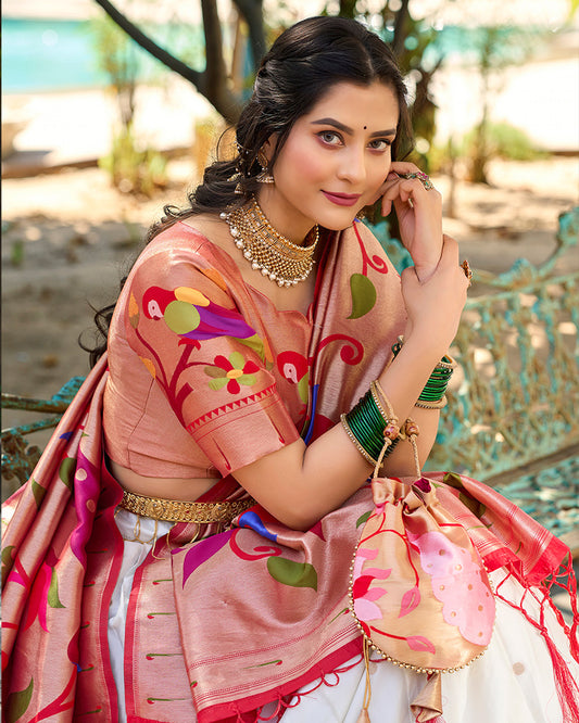 White And Red Color Banarasi Soft Silk Saree