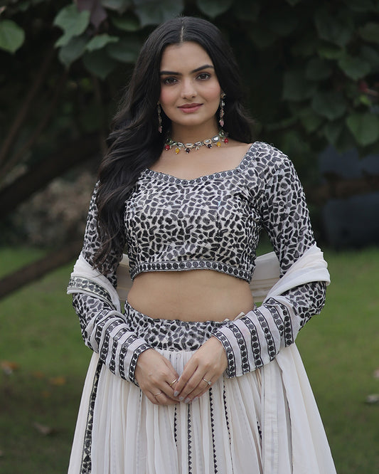White Color Chiffon Printed Lehenga Choli