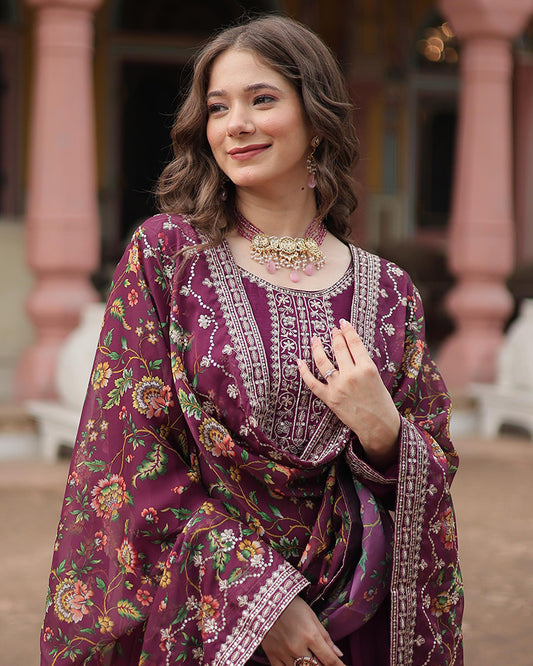 Wine Color Designer Embroidered Gown With Dupatta