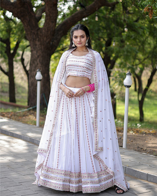 White Color Soft Georgette Designing Lehenga Choli