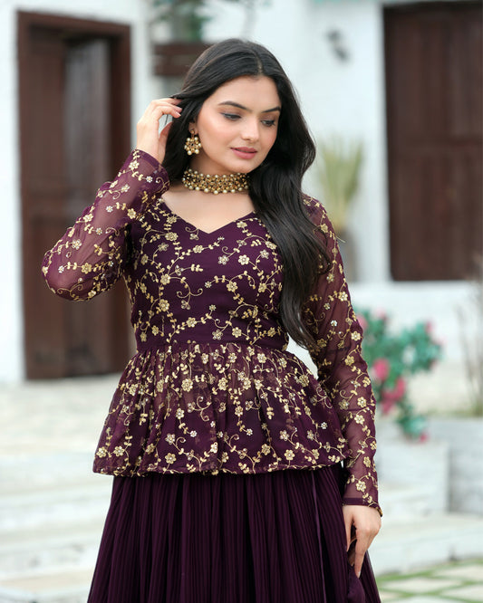 Wine Color Designer Sequins Embroidery Ready to Wear Lehenga Choli