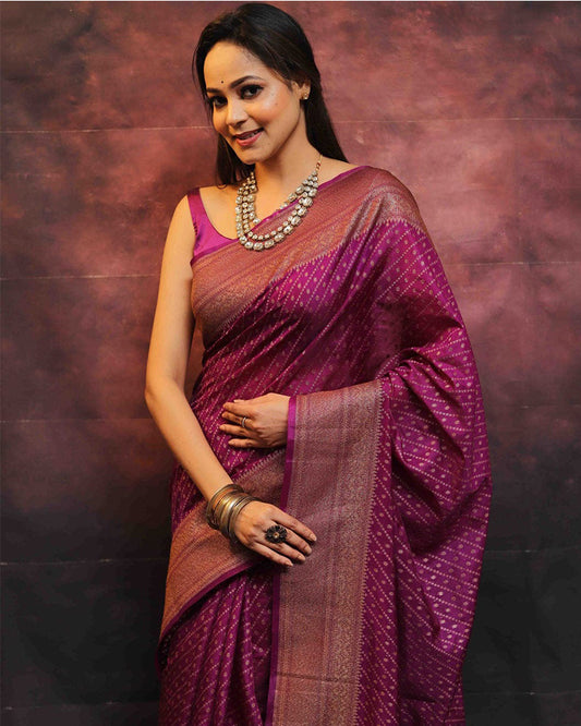 Wine Banarasi Silk Saree With Exclusive Jacquard Border