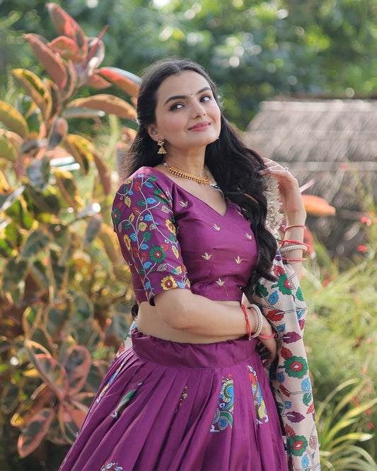 Wine Color Rangoli Silk Embroidered Lehenga Choli
