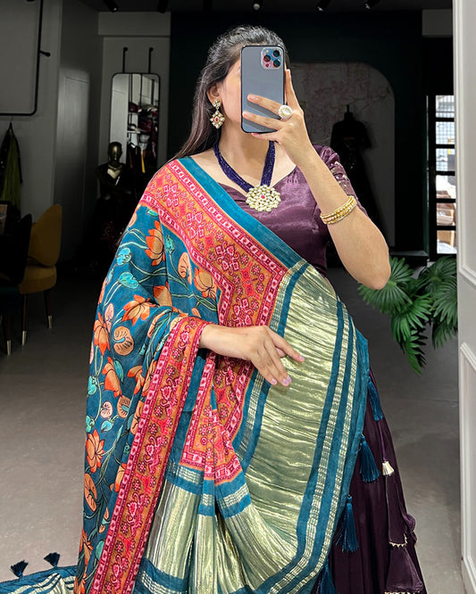 Wine Color Jacquard Print Banarasi Soft Silk Saree