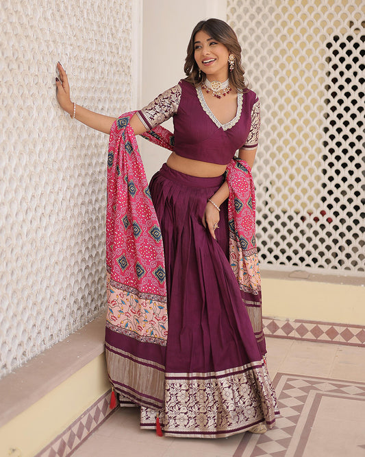Wine Color Pure Chanderi Navratri Lehenga Choli