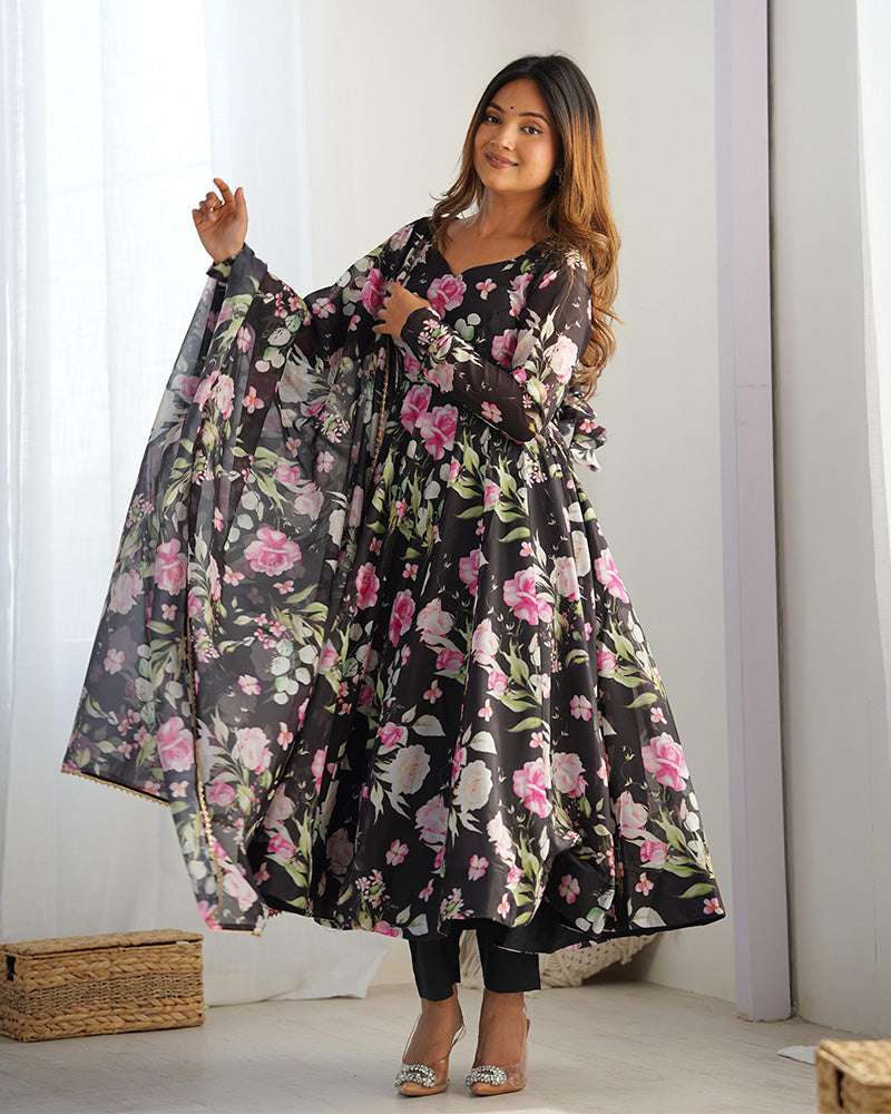 White Color Pure Soft Organza Three Piece Anarkali Suit