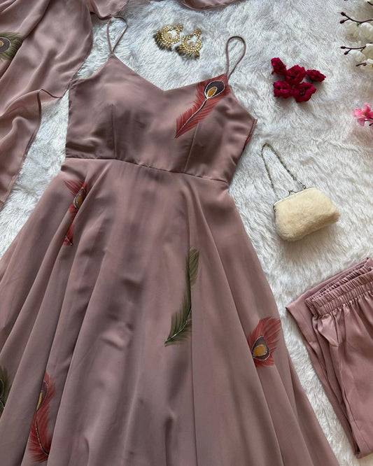 Dusty Onion Color Georgette Three Piece Anarkali Suit