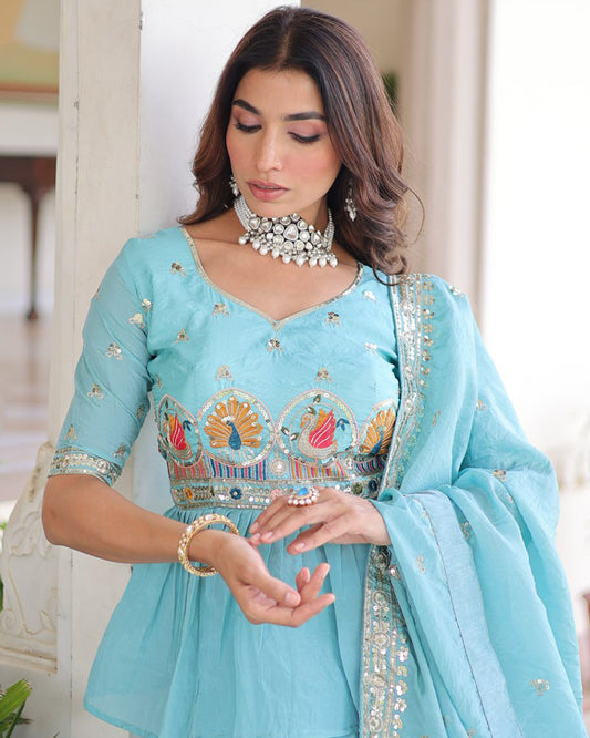 Sky Color Gold Crush Embroidered Lehenga Choli