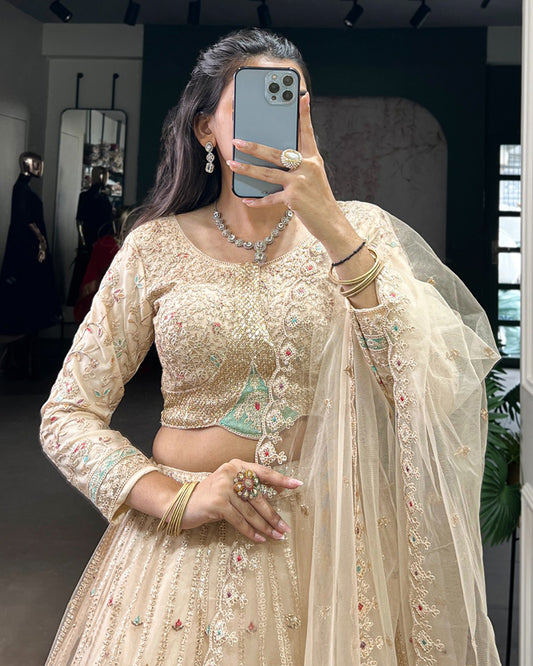 Off-White Color Gold Crush Sequence Embroidered Lehenga Choli