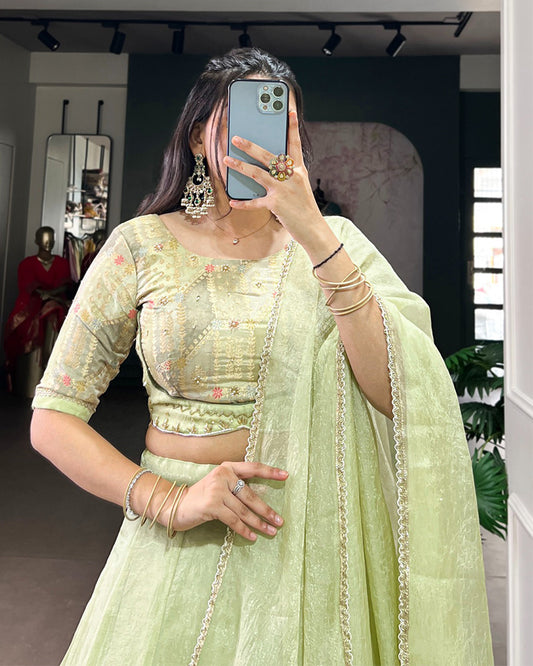 Mehndi Green Color Gold Crush Embroidered Lehenga Choli