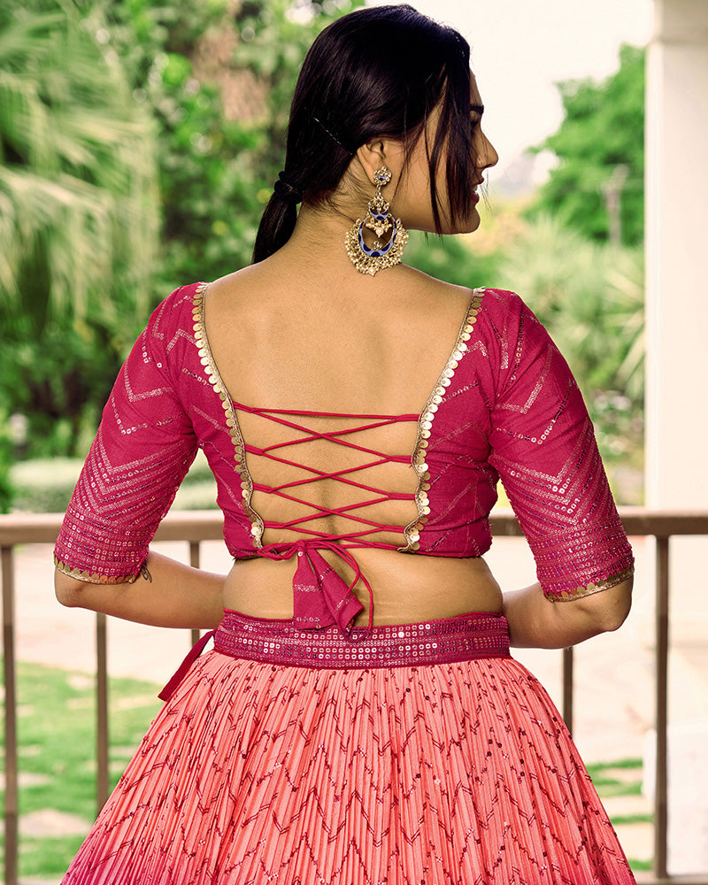 Pink Color Chinon Embroidered Lehenga Choli