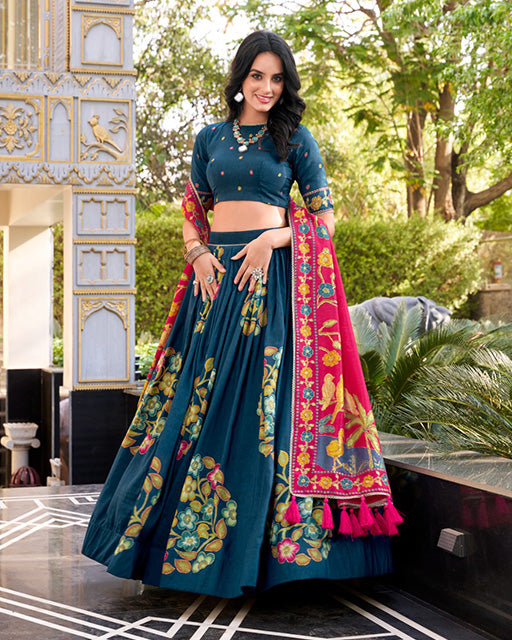 Purple Color Tussar Silk Printed With Foil Work Lehenga Choli
