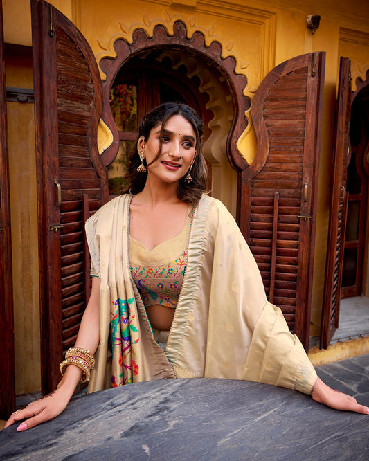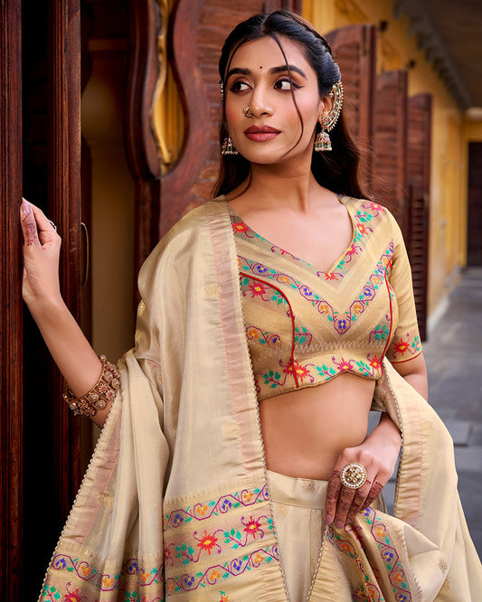 Off-White Color Gold Crush Embroidered Lehenga Choli