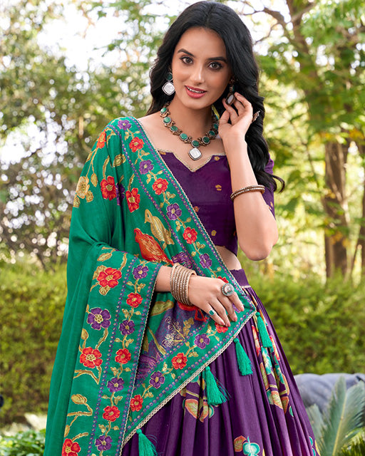 Purple Color Vichitra Silk Thread Embroidered Lehenga Choli