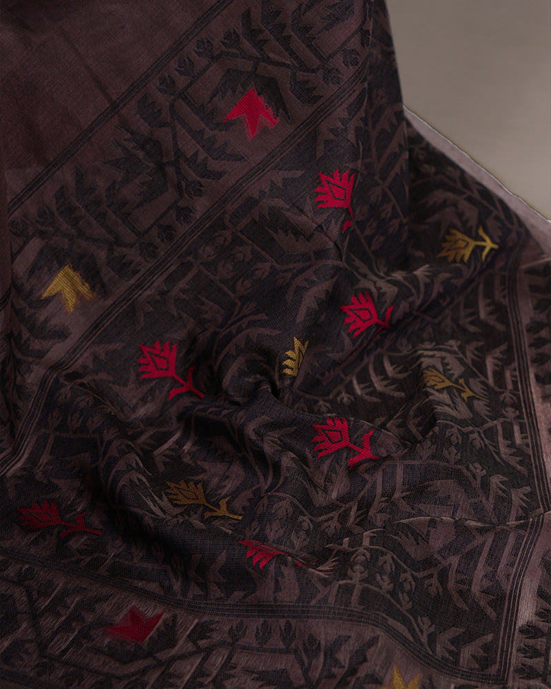 A stylish onion-colored saree crafted from soft poly cotton, featuring elegant thread weaving for a subtle, refined look. Lightweight and comfortable, perfect for casual and festive wear. Comes with an unstitched blouse for a personalized fit.