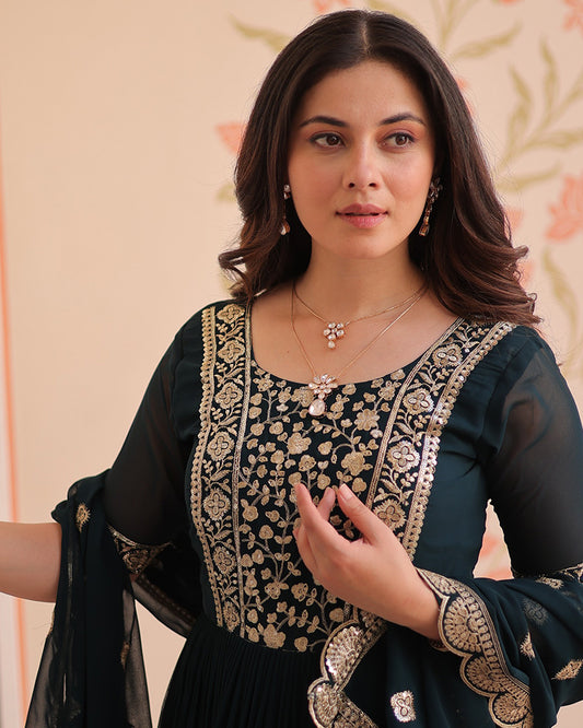 Elegant Rama Floor-Length Gown With Golden Threadwork