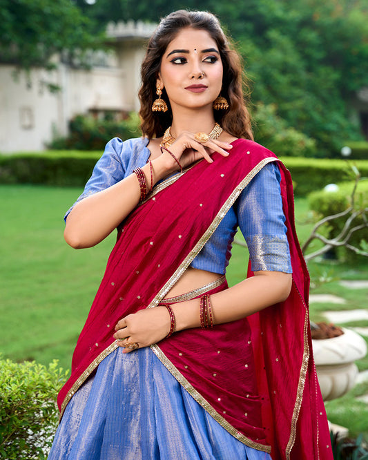Sky Blue Color Pure Chanderi Threaded Half Saree