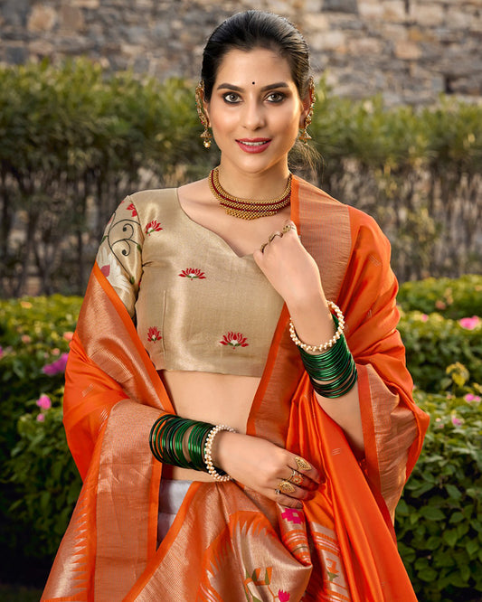Designer Orange Color Jacquard Paithani silk Half Saree