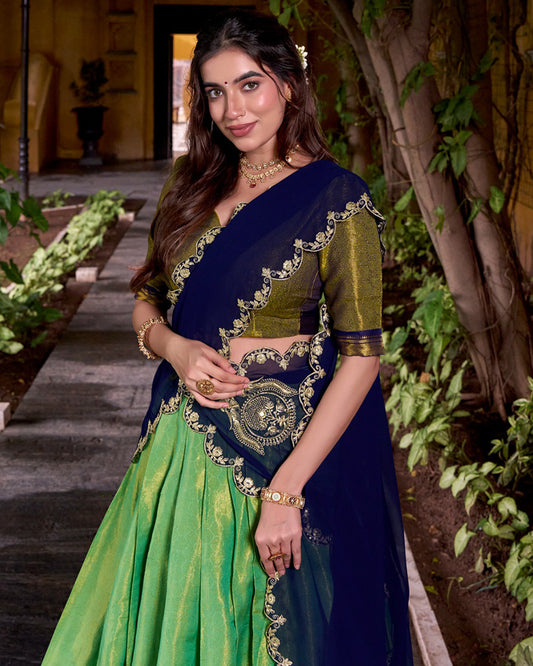 Designer Pista Color Kanchipuram Zari Weaving Half Saree