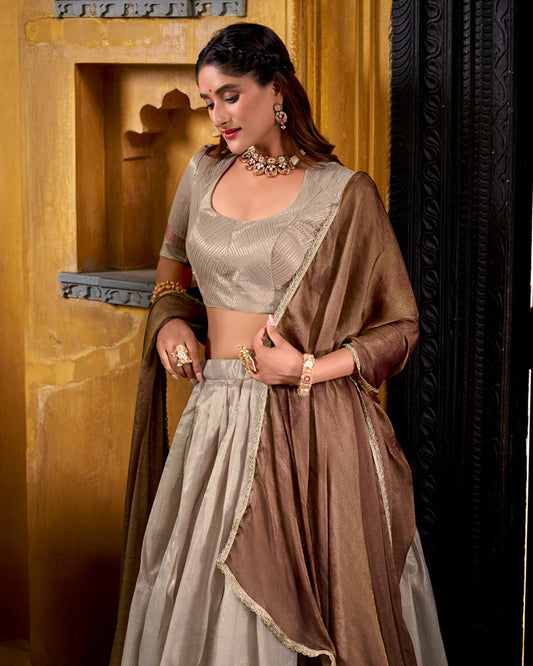 Off-White Color Crush Lehenga Choli With 2 Different Dupatta