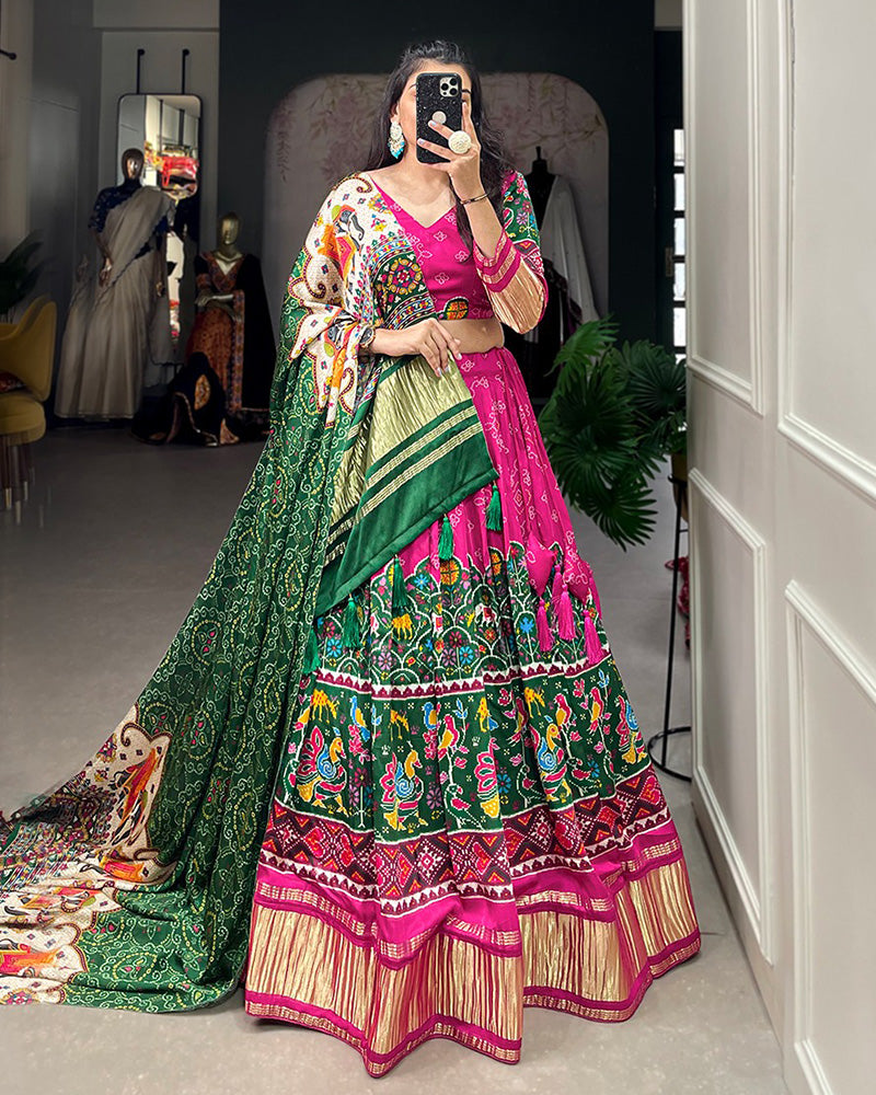 Red Color Gaji Silk Digital Printed Lehenga Choli