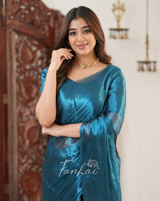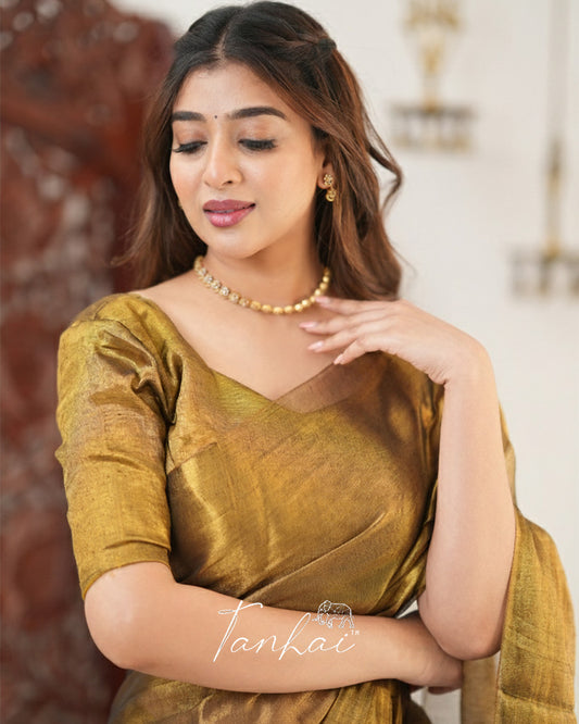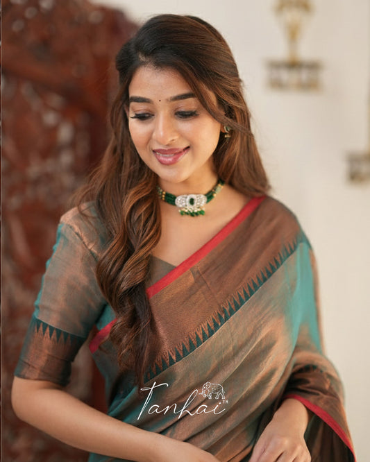 Tea Green Color Handloom Raga Tissue Cotton Saree