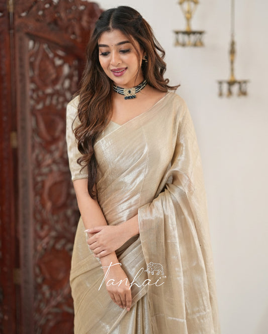 Off-White Color Handloom Raga Tissue Cotton Saree
