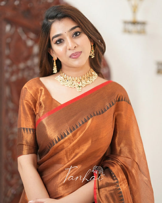 Maroon Color Handloom Raga Tissue Cotton Saree