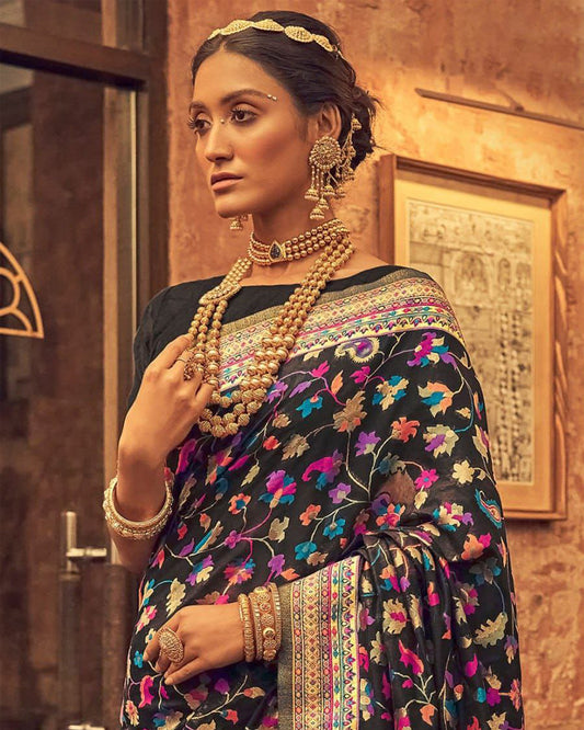 Black color Soft banarasi Silk Saree