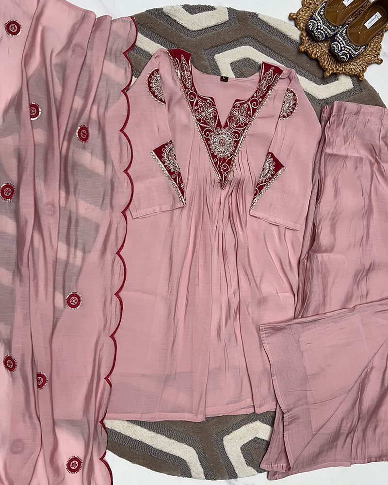 Baby Pink Color Roman Chanderi Plazzo Suit