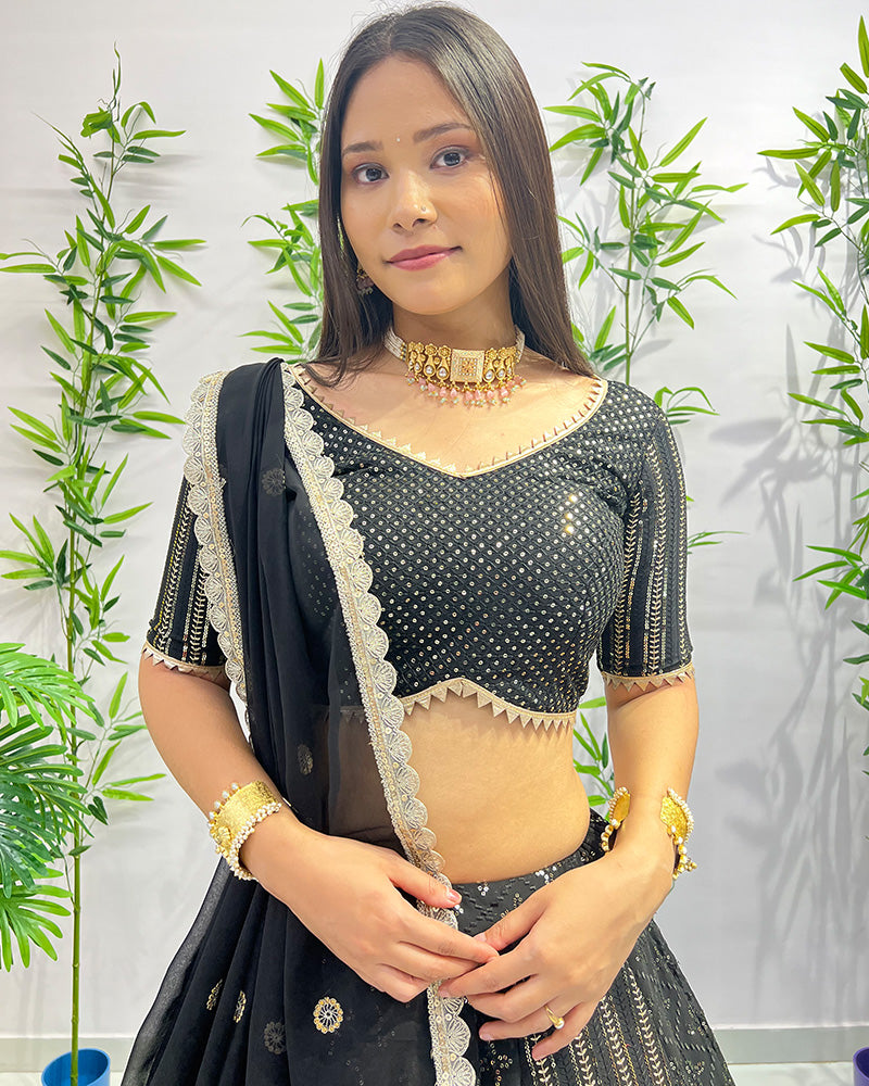 Black Color Designing Georgette Embroidered Lehenga Choli