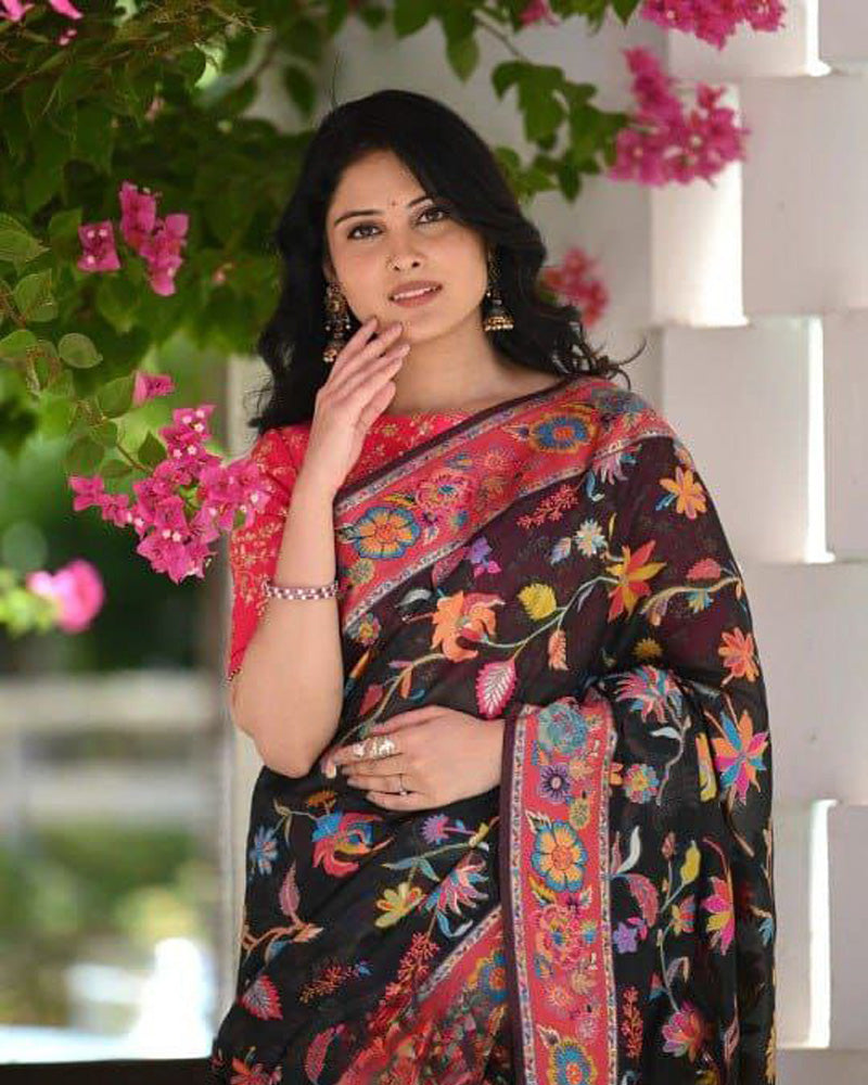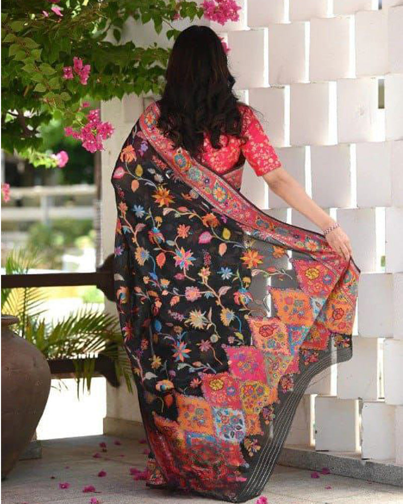 Black Colour Banarsi Soft Silk Saree