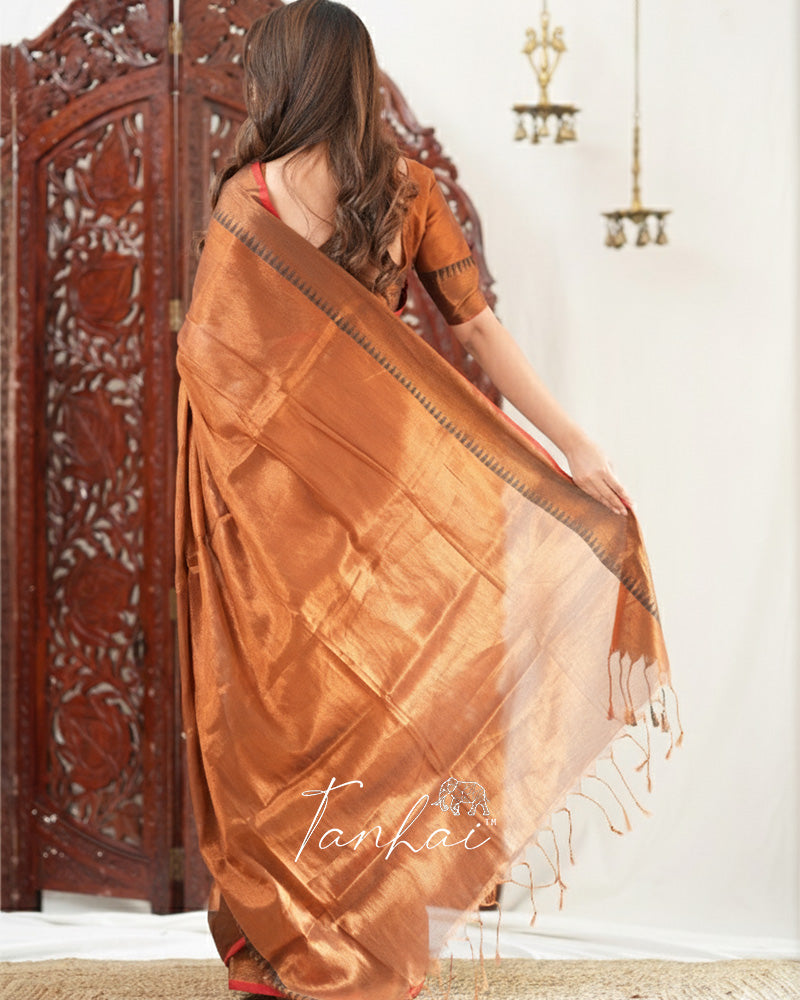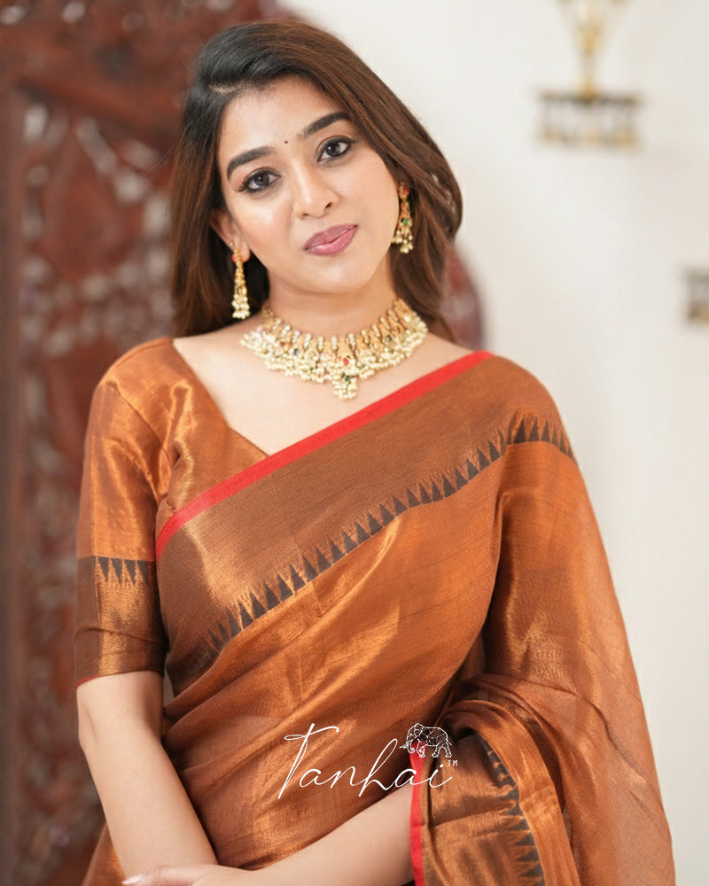 Brown Color Tissue Cotton Saree