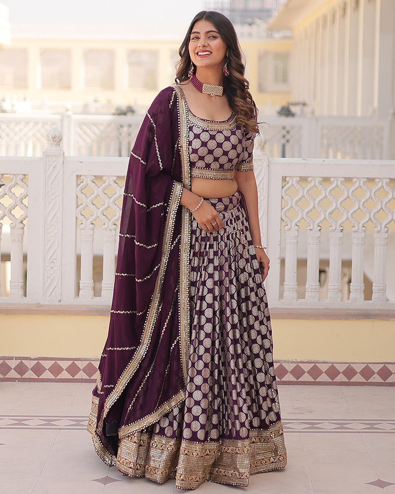 Wine Color Pure Viscose Jacquard Lehenga Choli