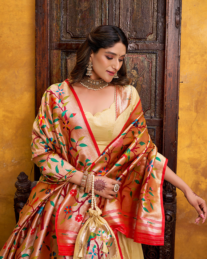 Cream Color Paithani Silk Zari Weaving Lehenga Choli