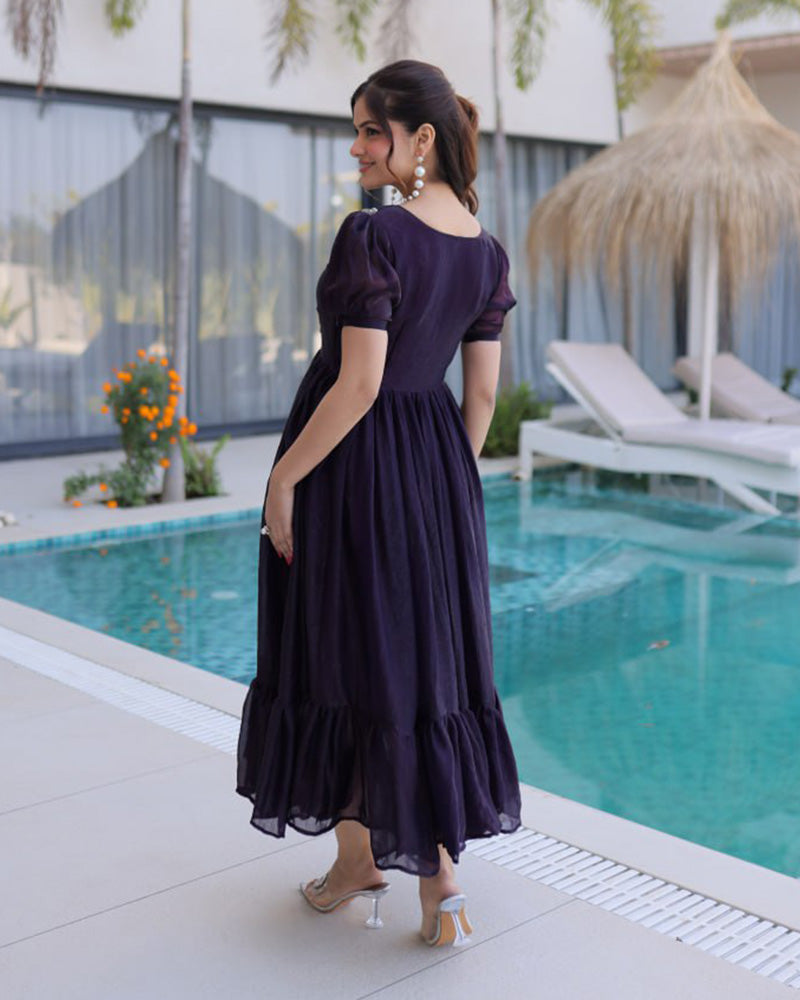 Dark Purple Color Fendi Silk Beads Embroidered Gown