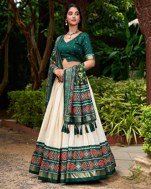Green Color Tussar Silk Patola Printed Lehenga Choli