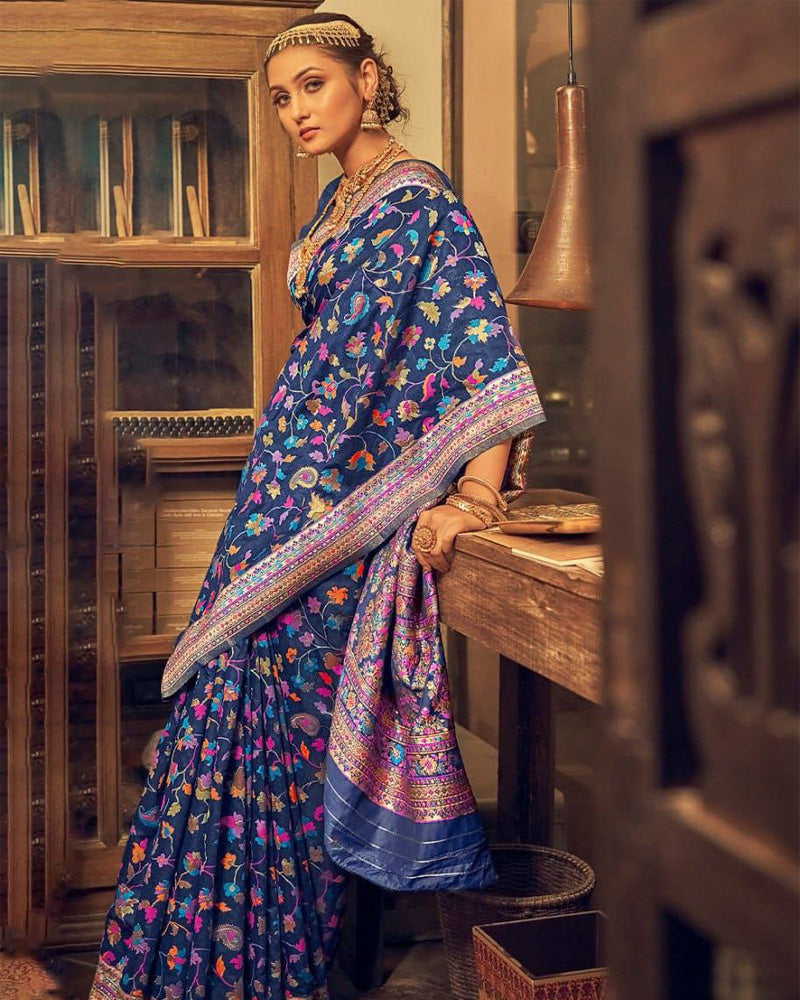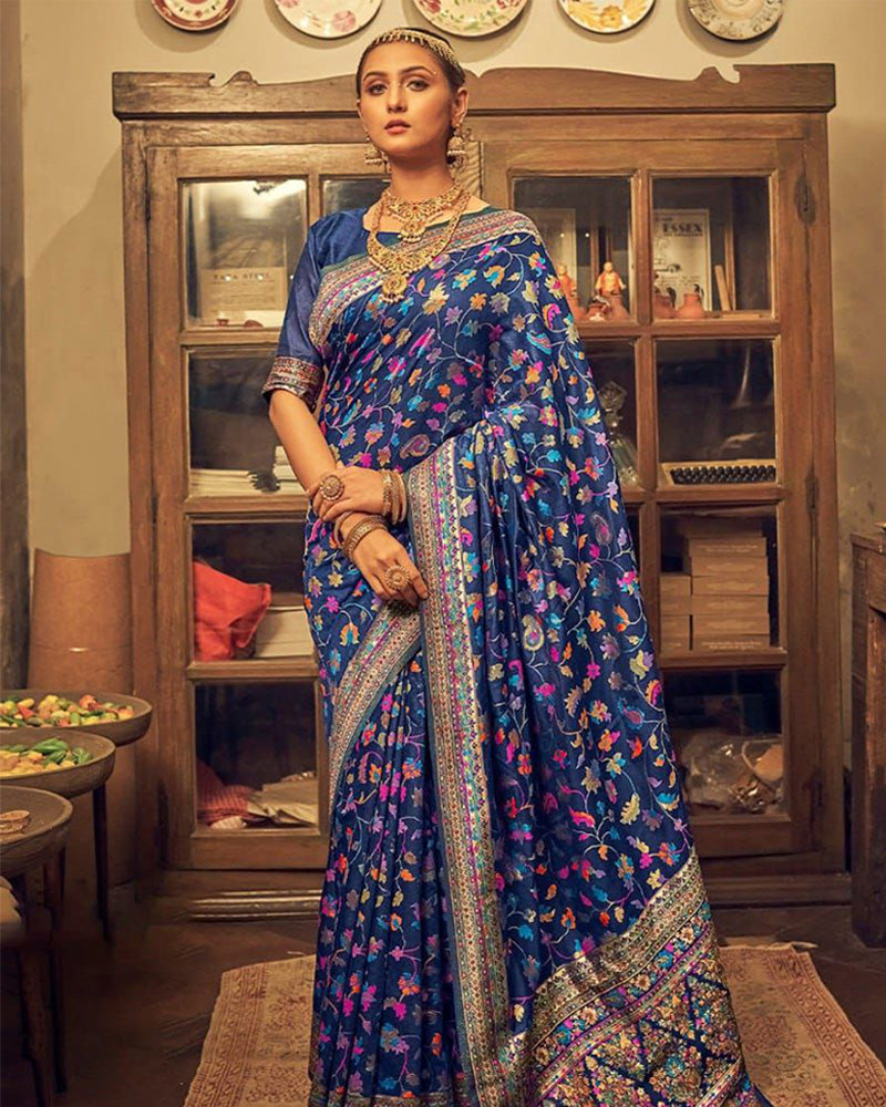 Heavy designer Blue Colour Banarsi Soft Silk Saree