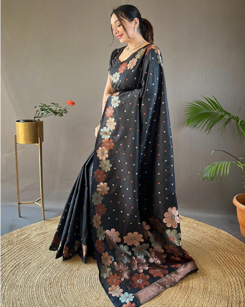 Jacquard Design Black color Soft Lichi Silk Saree
