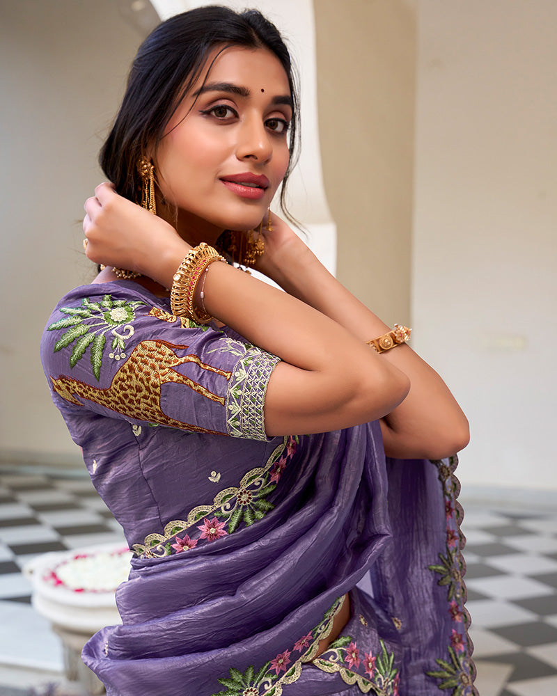 Lavender Color Gold Crush Embroidered Lehenga Choli