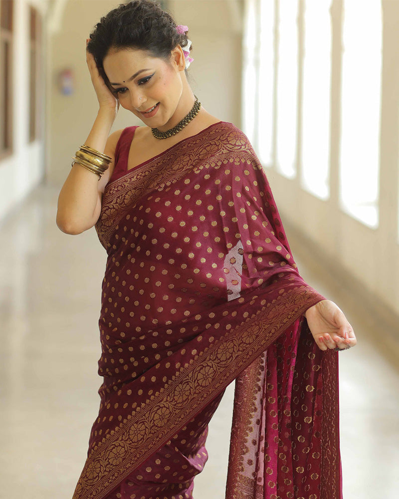 Maroon Color Banarasi Jacquard Soft Silk Saree