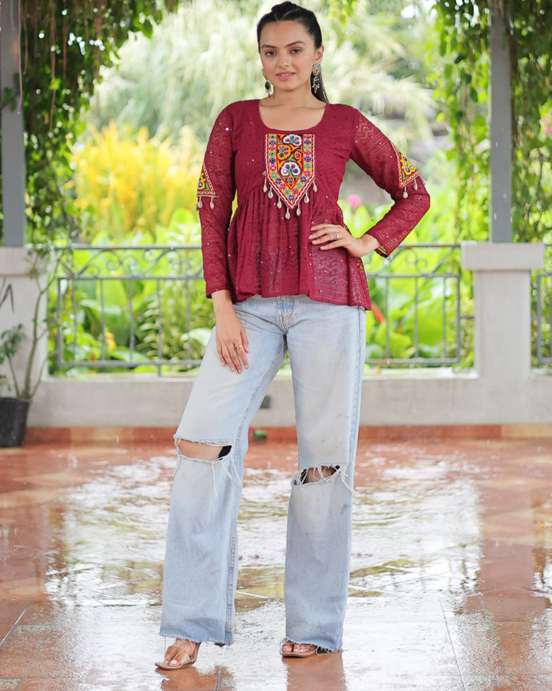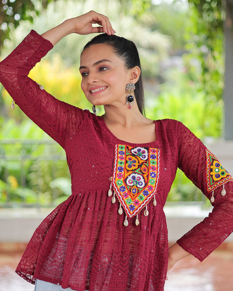 Maroon Color Georgette Schiffli Work Navratri Kediya