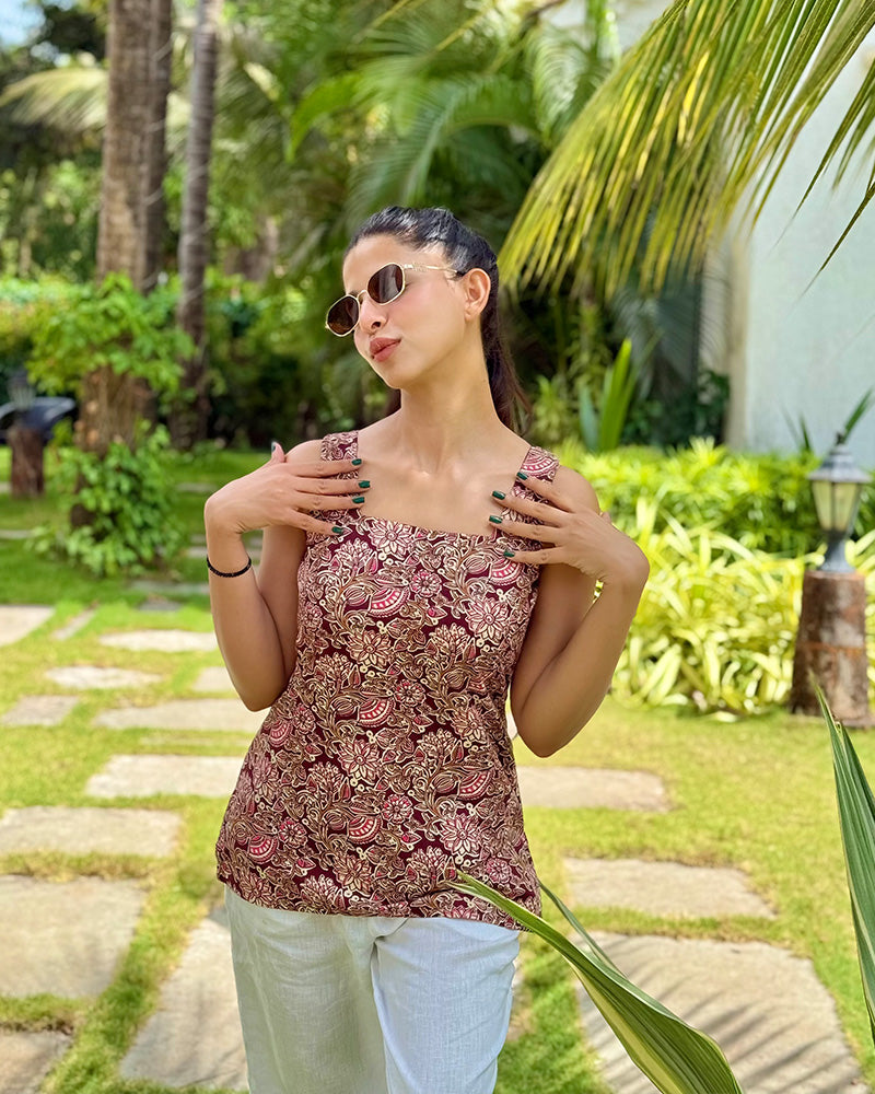 Comfortable and stylish, this maroon tunic is crafted from pure cotton and features delicate floral prints. Perfect for everyday wear, casual outings, or semi-formal occasions, it offers a breezy and elegant look..