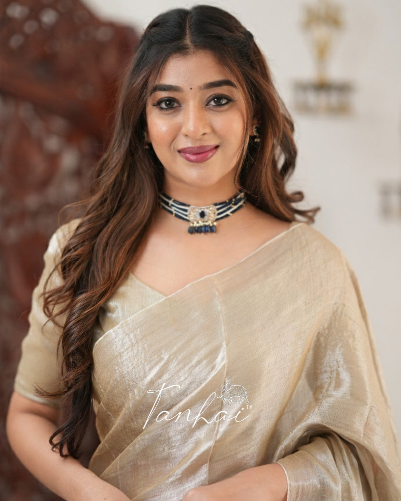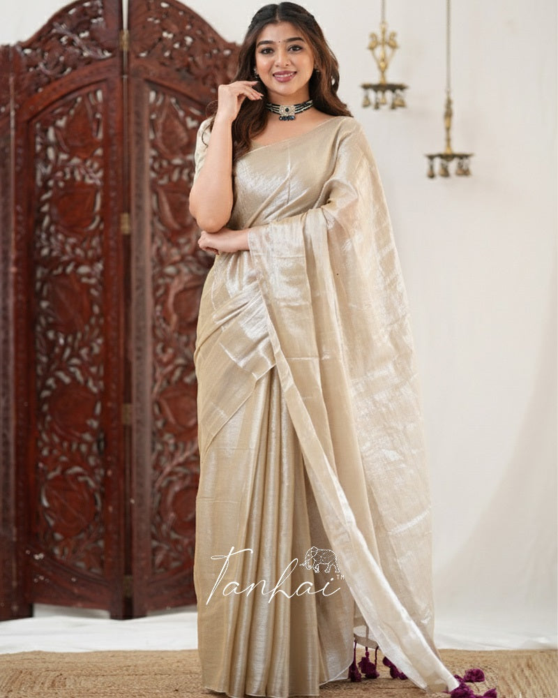 Off-White Color Handloom Raga Tissue Cotton Saree
