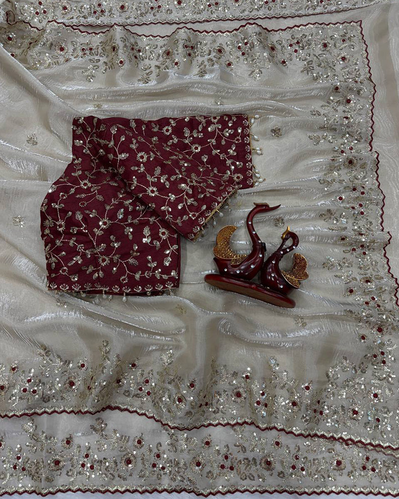 Embrace sheer elegance with this Cream Color Pure Soft Organza Saree. Crafted from lightweight and delicate organza, it offers a soft texture with a graceful, airy drape. Perfect for festive occasions and sophisticated gatherings, this saree exudes timeless charm and refined style.