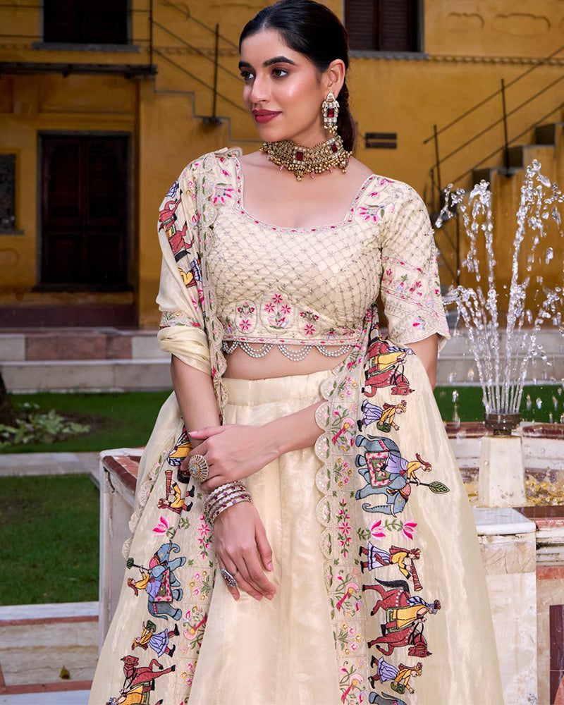 Off-White Color Raspberry Lehenga Choli