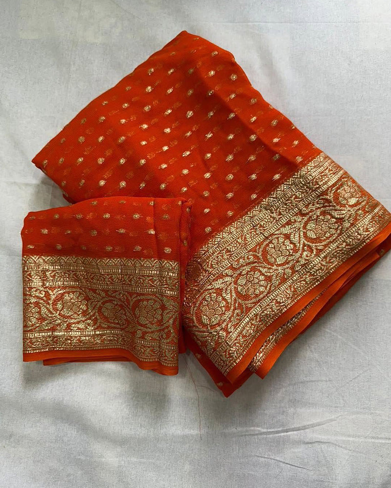 Orange Color Pure Viscose Georgette Saree
